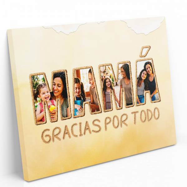 No olvides guardar tu personalización para poder añadirla al carritoUn regalo lleno de significado para celebrar el Día de la Madre. Este lienzo personalizado destaca por su diseño moderno y emotivo, donde las letras “MAMA” se convierten en el centro de la composición, rellenas con vuestras propias fotografías, creando un efecto visual único y lleno de recuerdos.